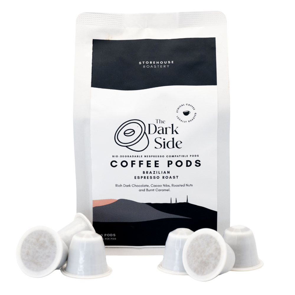 Available in two size: 30 pods and 100 pods with each pod containing 5.2 grams of The Dark Side coffee.